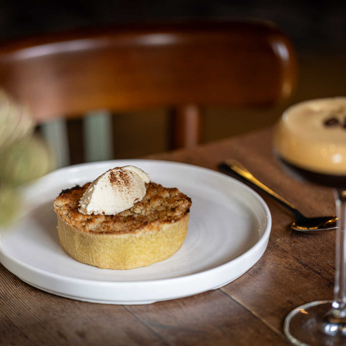Apple crumble tart, cinnamon cream (v) (ve available) 613 kcals