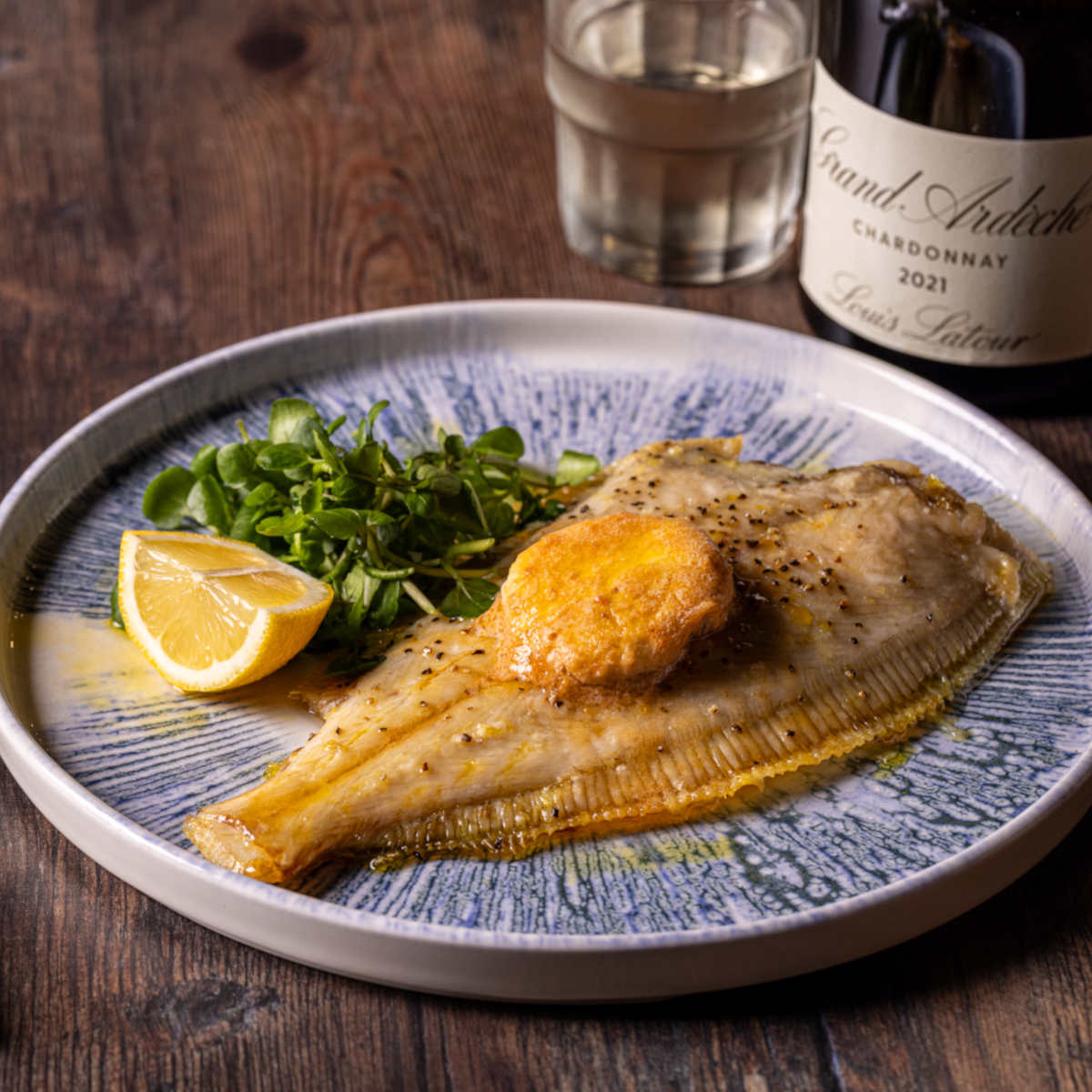 Grilled Cornish sole, Devon crab butter, crushed new potatoes | 23 584 kcals